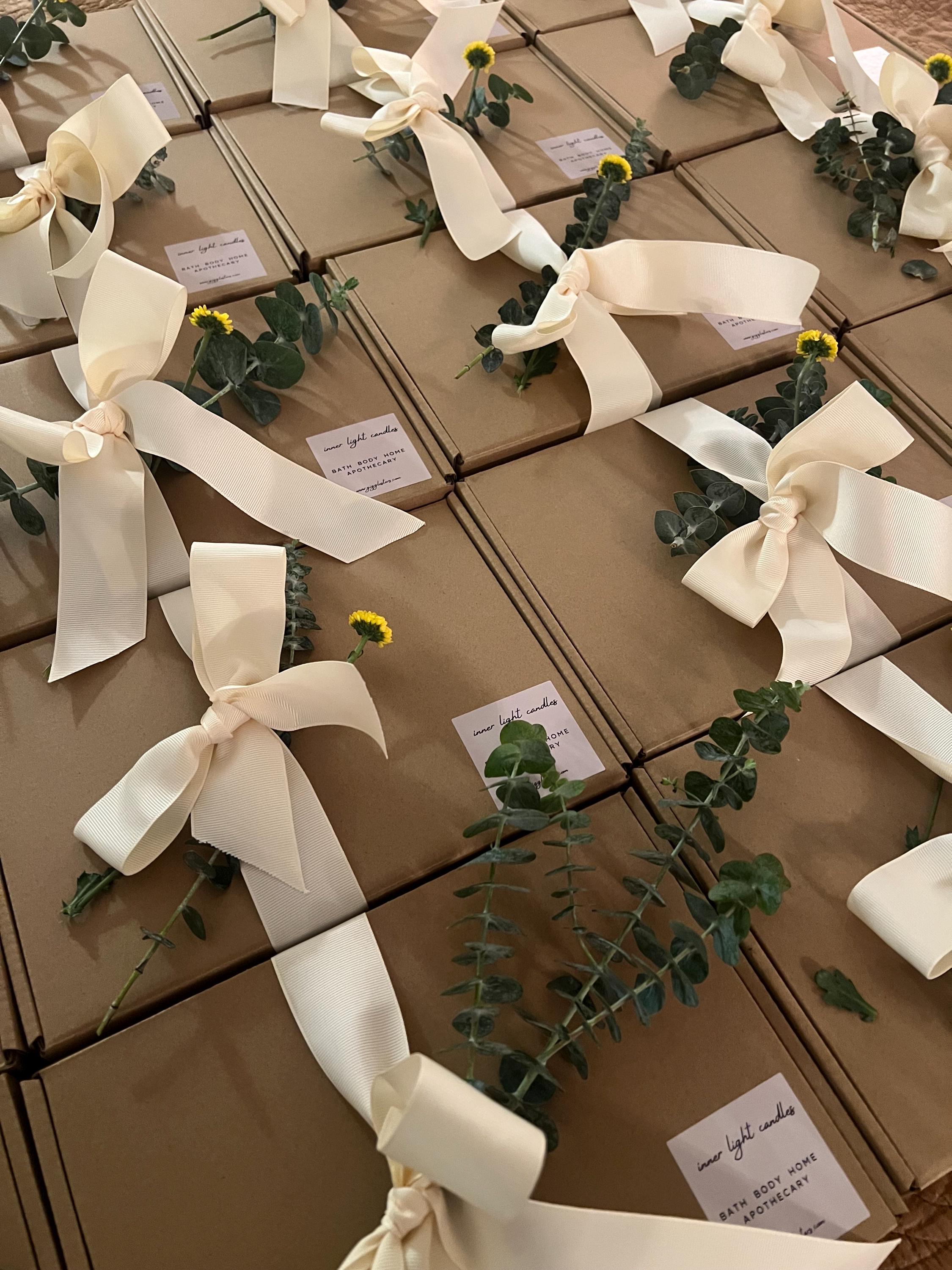 This listing includes four soaps of your choice, packed in a gift box with tissue paper, recycled paper shred, ribbon or twine tie, & seasonal dried botanicals.